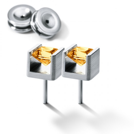 Der Citrin wird durch Spannung in der Fassung gehalten. Somit schwebt er optisch. Durch die polierten Seiten reflektiert das Licht in der Fassung des Ohrsteckers.